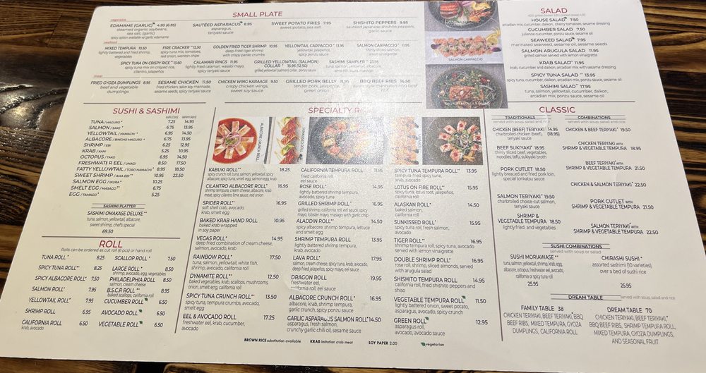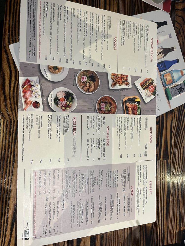 Introducing the menu at Kabuki Japanese Restaurant, located in Cerritos, CA, known for its diverse offerings and excellent service. With a focus on traditional Japanese cuisine, Kabuki offers a wide range of appetizers, sushi, drinks, cooked entrees, and desserts. Customers praise the refreshing menu with a broader selection of dishes, including vegan and vegetarian options. The restaurant provides a casual dining atmosphere with wheelchair accessibility and cater to different dietary preferences. Visitors can enjoy happy hour specials, full bar service, and unique dishes like the California rolls and Salmon Arugula salad. The staff is friendly, and the establishment offers outdoor seating, free Wi-Fi, and convenient parking options. Experience the flavors of Japan at Kabuki Japanese Restaurant for a memorable dining experience.